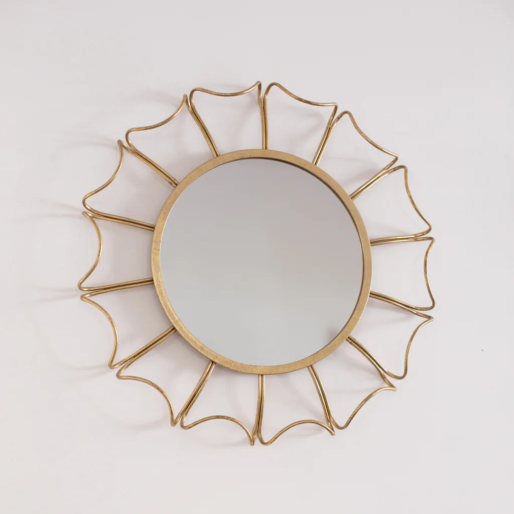 Lo specchio FLOWER in metallo dorato effetto opaco con petali arricciati non è soltanto un semplice specchio, ma è pensato per essere una vera e propria decorazione a parete che conferirà maggiore estetica al tuo spazio abitativo.