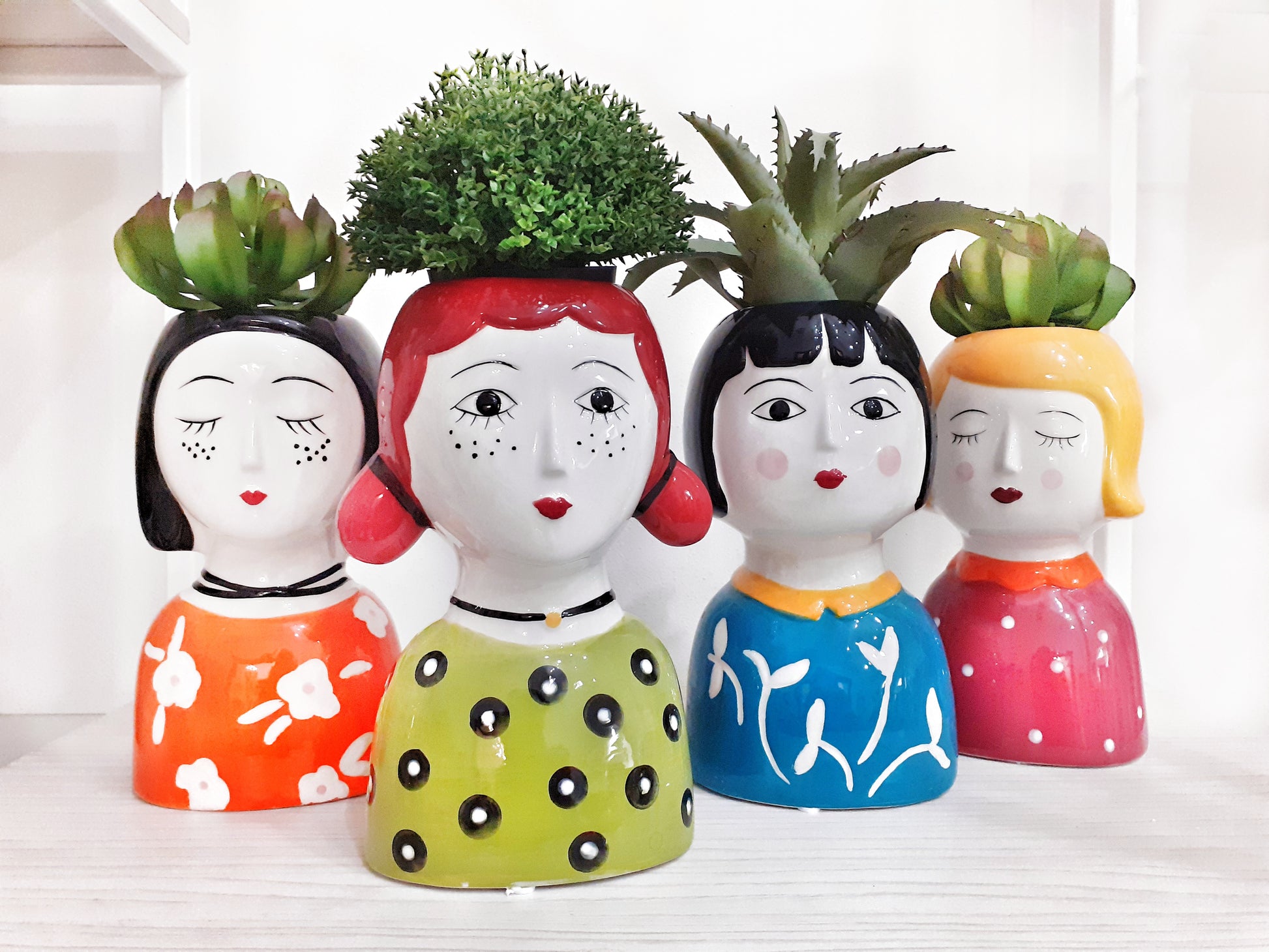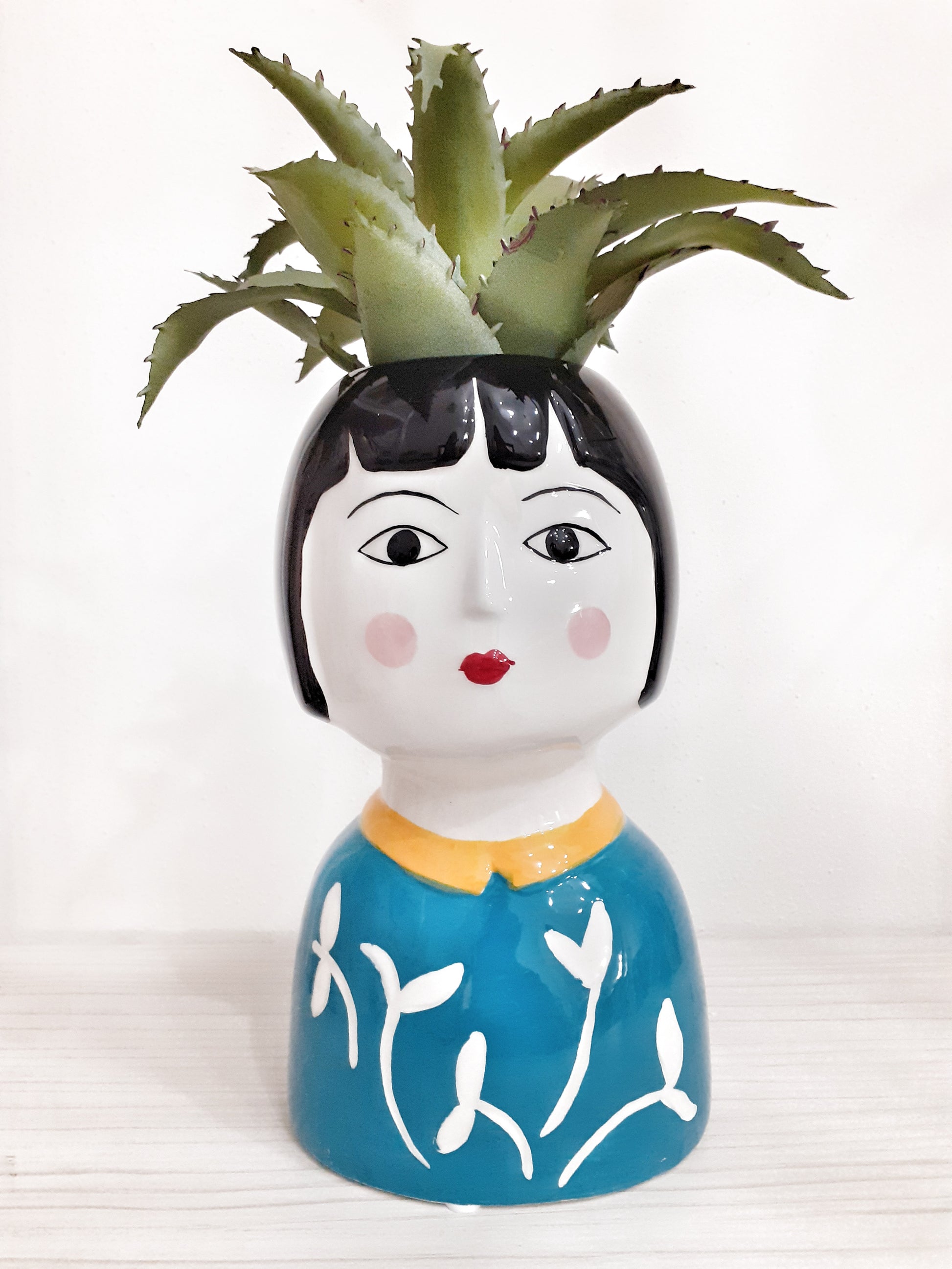 Vaso portapiantine GIAPPONESINA in ceramica della collezione "Le Signorine". Un simpatico e colorato complemento d'arredo che non andrà solo a decorare uno tuo spazio prescelto, ma sarà utile a incentivare la tua passione per la cura del verde, diventando un bellissimo portapiantine. Colorato, dipinto a mano in ceramica lucida e waterproof è un vaso perfetto per ambienti moderni e "high vibes"!